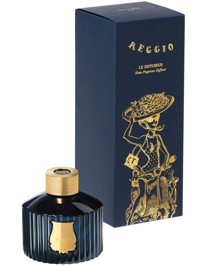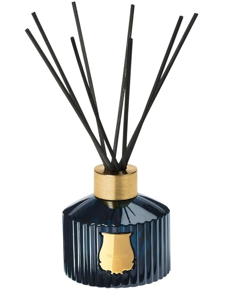Crafted in the same iconic blue glass, the fluted 350ml container is adorned with a gold emblem.
